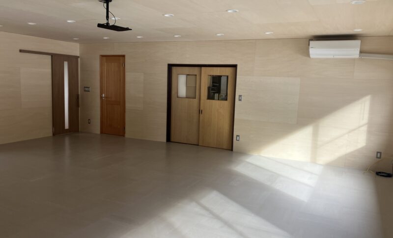内装は、壁・天井ともにシナベニヤ仕上げ。素材の持つやわらかな木目が空間全体に広がり、明るく落ち着いた印象をつくっています。また、屋根・壁の解体にあわせて断熱材を新たに施工。
