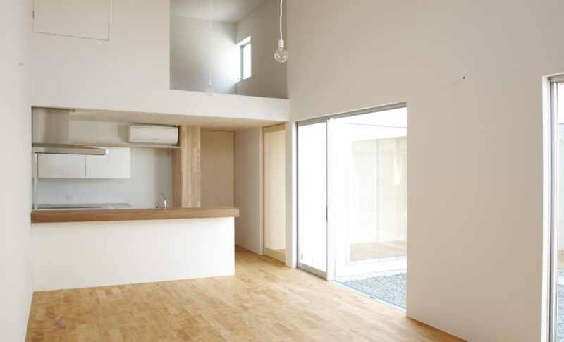 建物の中心に中庭を配置し、室内をぐるりと一周できる回遊性のある間取り。どこにいても自然と視線が抜け、家の中をのびのびと行き来できる、心地よい動線となっています。